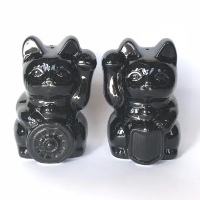 Fortune Cat・ソルト&ペッパー 4,400円ITEM CODE : #17 ¥4,400(税込) オリジナルフォーチュンキャットのソルト&ペッパーです。 (同色2体セット)陶器製 H=85mm (ペア箱入り) カラー:ホワイト・ブラック ご購入方法について